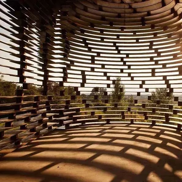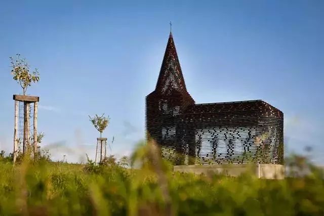 这个教堂是由生锈的钢铁板搭建而成,精细的设计形成一百个堆砌的层次。这些层次之间的缝隙使观者能够穿透空间,视野到达彼 岸。这个项目的名称其实是叫 Reading between the Lines